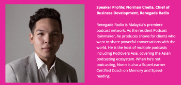 New Speaker from Malaysia's premiere podcast network, Renegade Radio