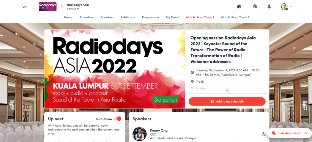 Ask the team on the Registration Desk if you are at the event in-person or contact: helpdesk@radiodaysasia.com